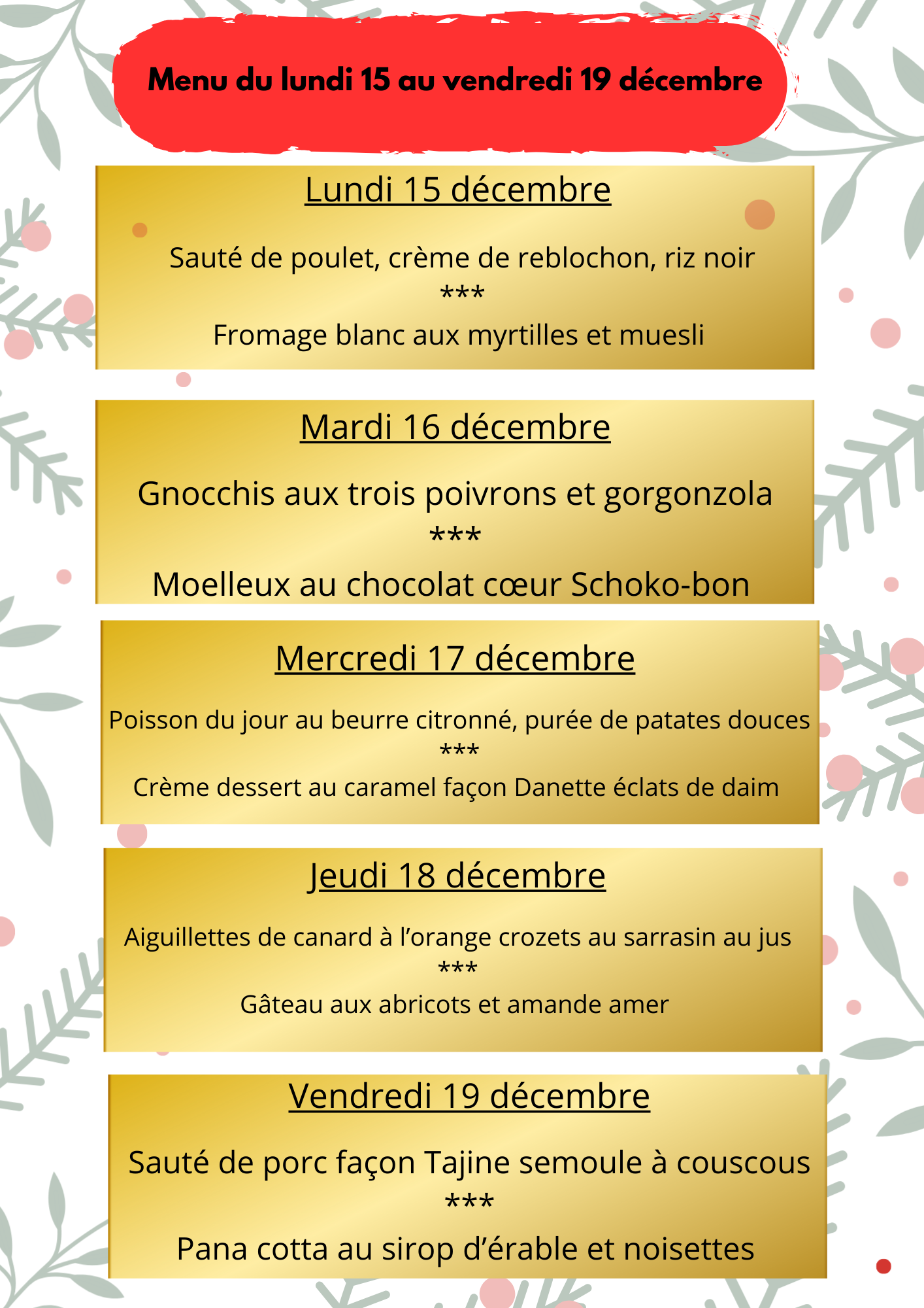 PAS DE CANTINE LES 25 ET 26 DECEMBRE 2025